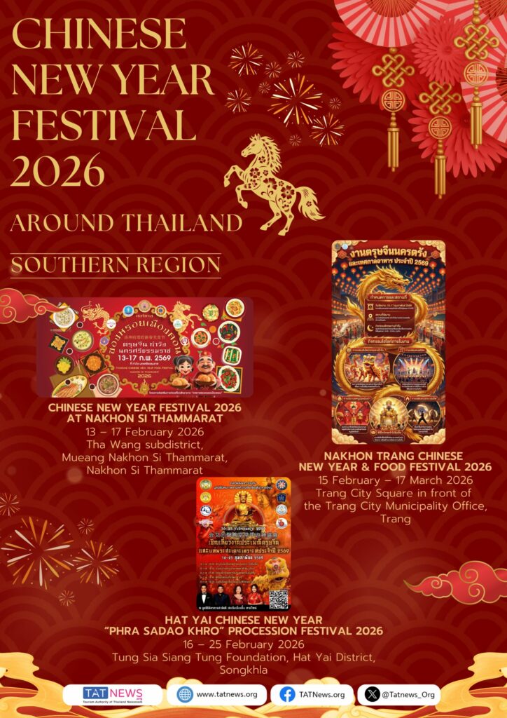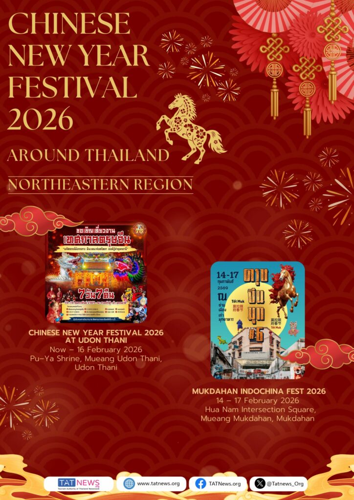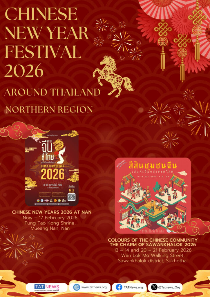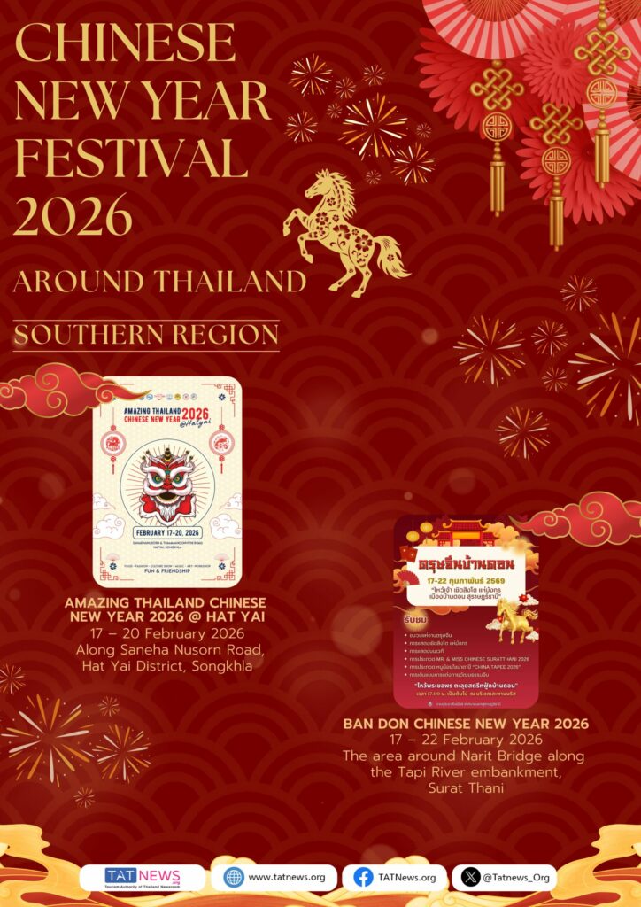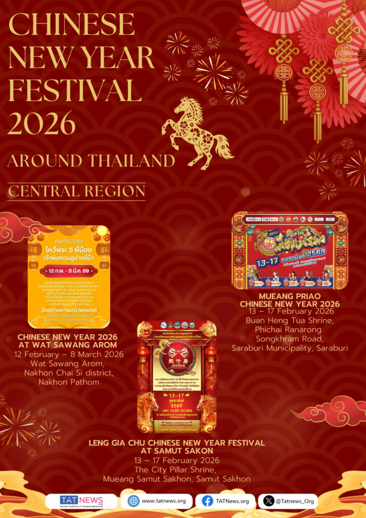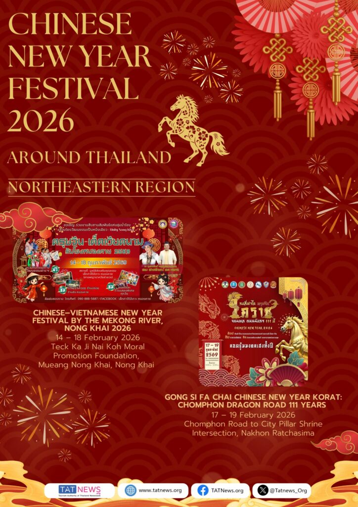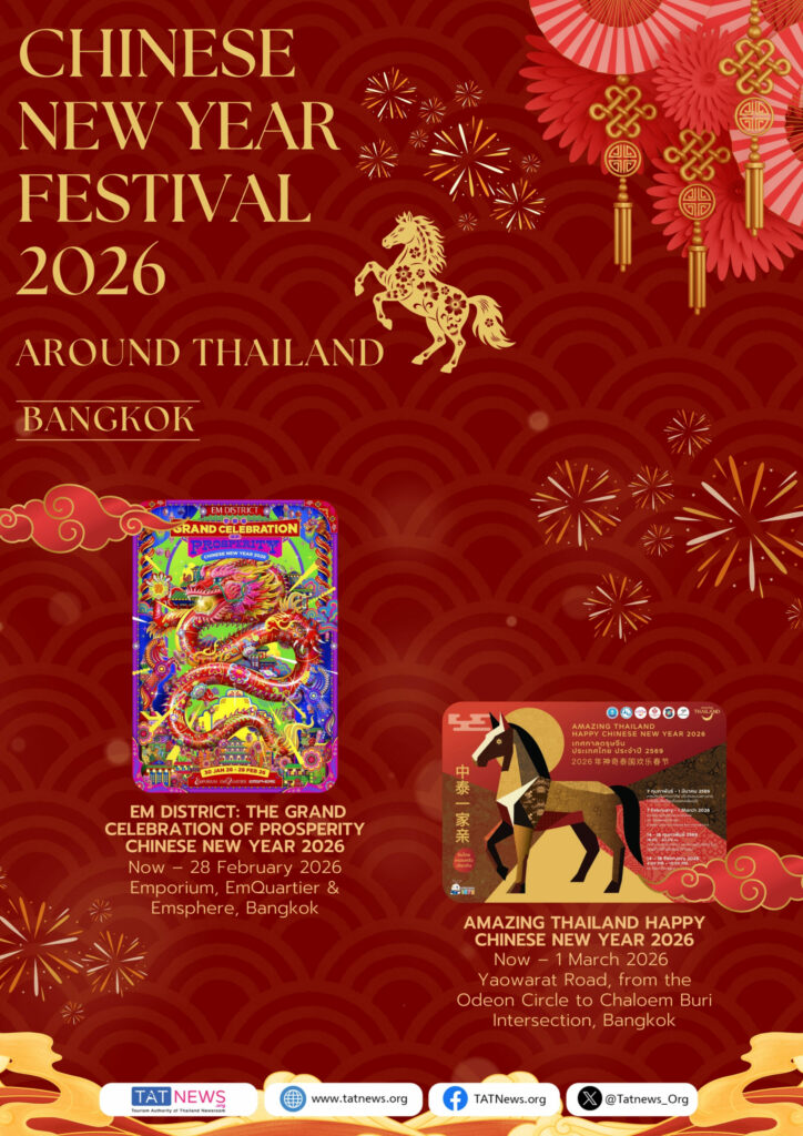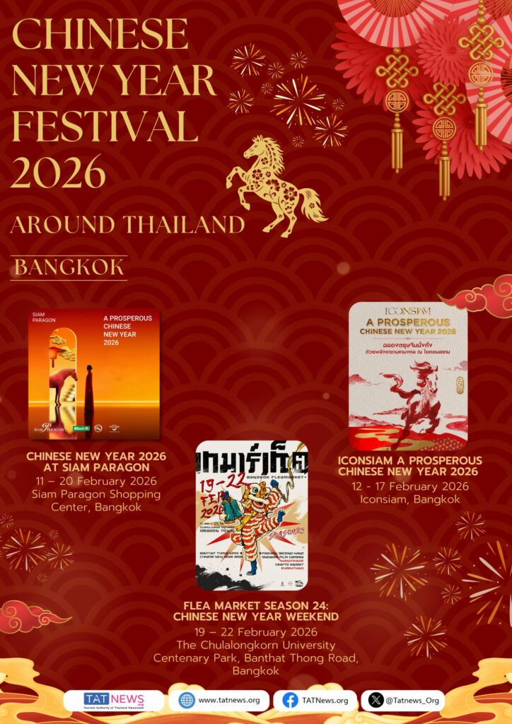 De Tourism Authority of Thailand (TAT) nodigt reizigers van over de hele wereld uit om het Chinees Nieuwjaar 2026 in Thailand te vieren. Van bruisende festiviteiten in Bangkok – waaronder Yaowarat, ICONSIAM, Siam Paragon en belangrijke lifestyle-wijken – tot culturele vieringen in provincies in het Centraal-, Noord-, Noordoost- en Zuid-Thailand, biedt het land een veelzijdige en feestelijke agenda gedurende de hele Chinese Nieuwjaarsperiode.