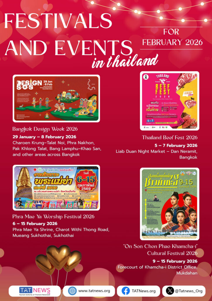 • Thailand Beef Fest (5–7 februari 2026, Bangkok): een festival voor vleesliefhebbers met proeverijen, kookshows en seminars.