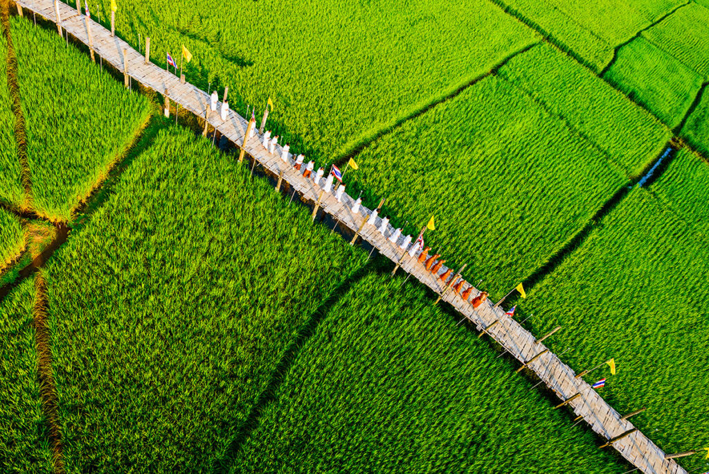 Deze prachtige 500 meter lange bamboebrug die over rijstvelden en een riviertje loopt, is pas in 2012 gebouwd en is al snel een populaire plek geworden onder toeristen, zowel Thais als buitenlanders.