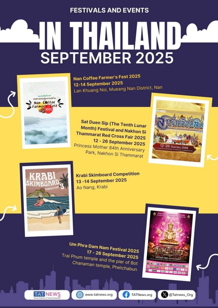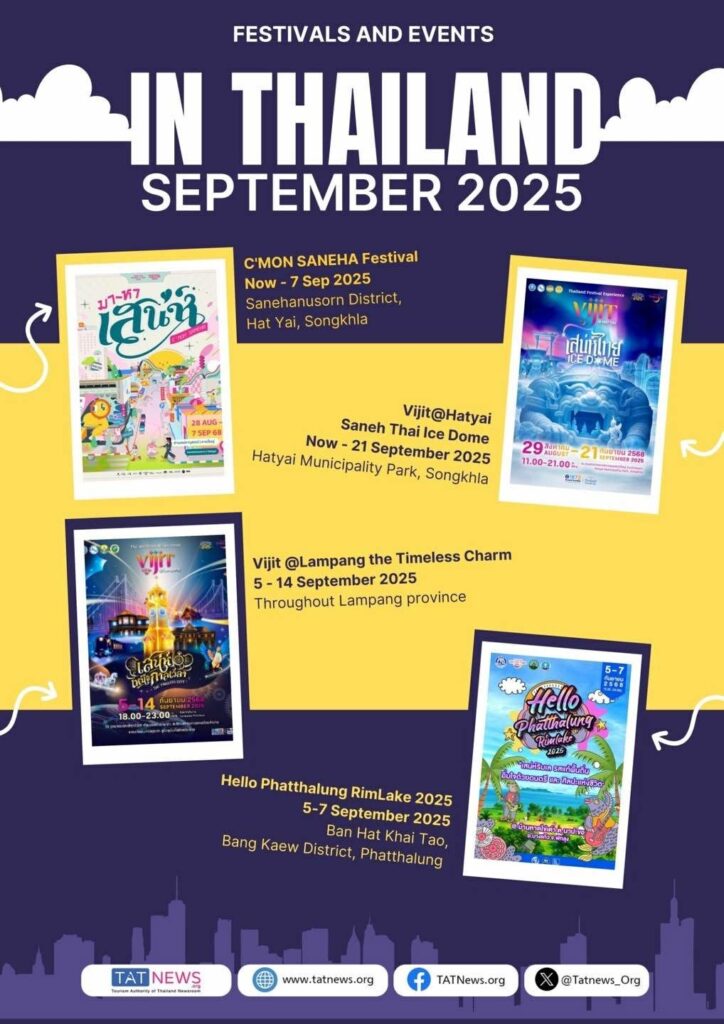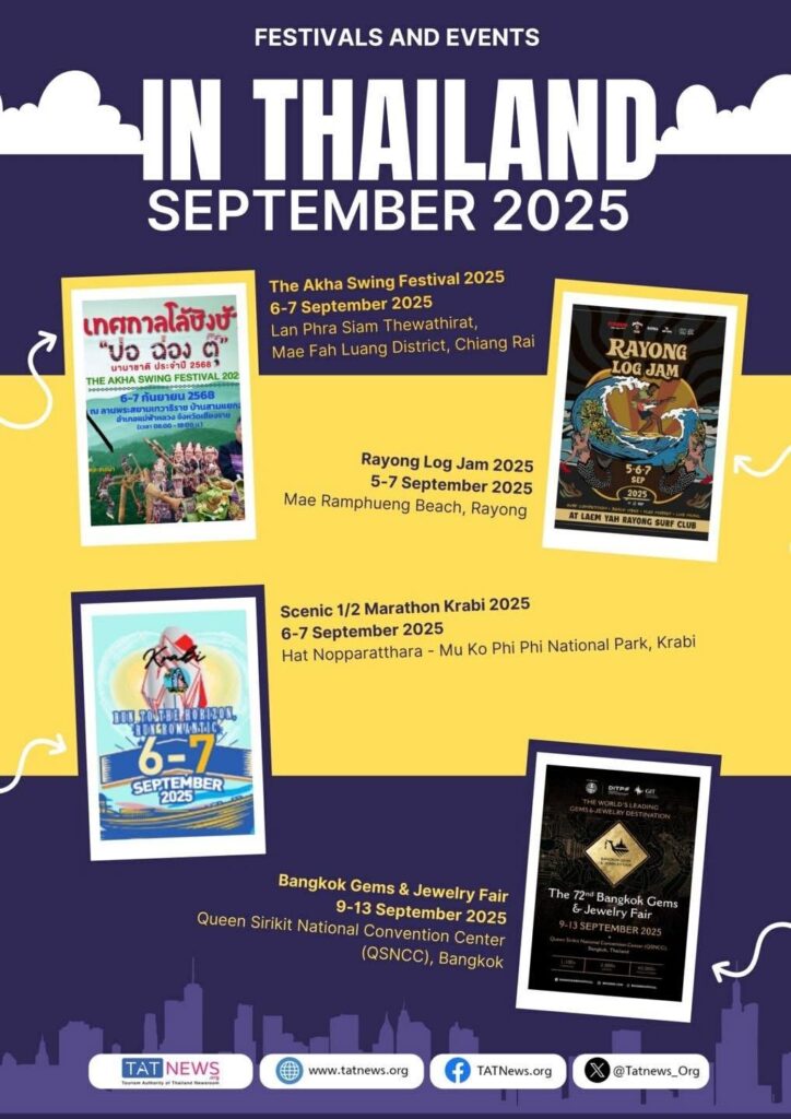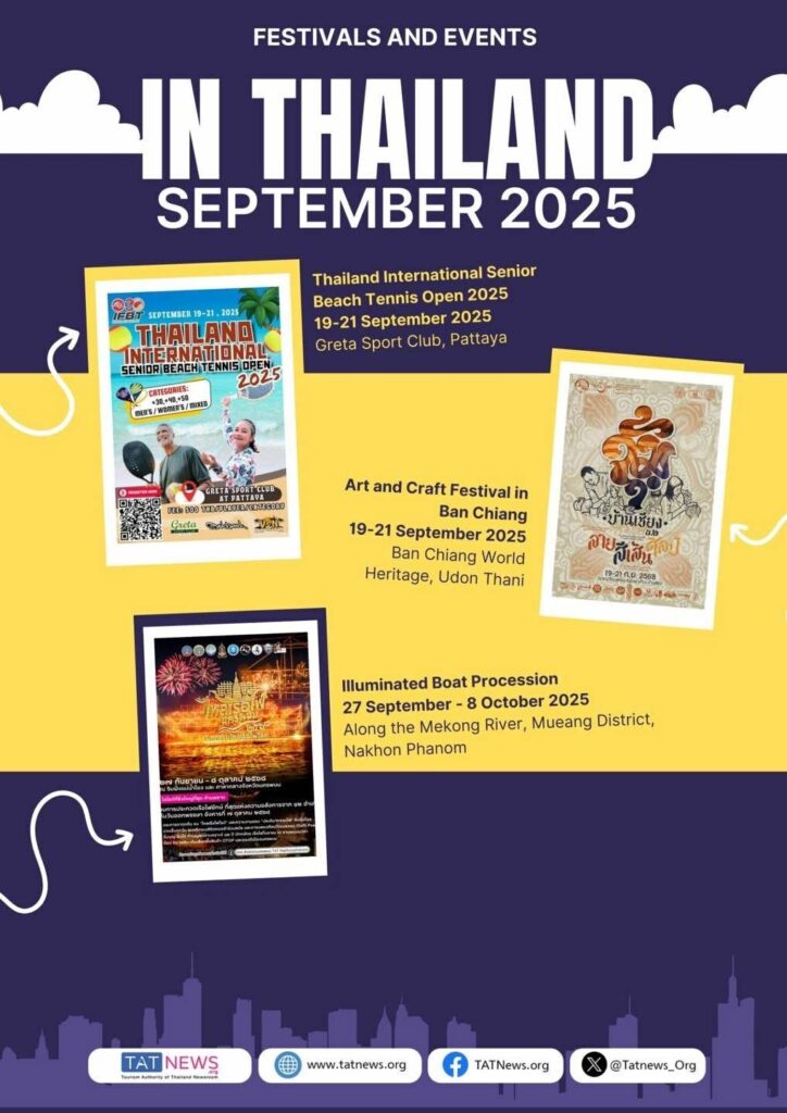 September bruist ook van culturele en religieuze tradities: het Salak Yorm Festival (Lamphun), het Ting Kra Jard Festival (Suphan Buri), de verlichte bootprocessie Lai Reua Fai (Nakhon Phanom), het Por Tor Festival of “Hungry Ghost Festival” (Phuket) en de eeuwenoude langebotenraces in onder meer Ayutthaya, Chonburi, Phitsanulok en Nan.